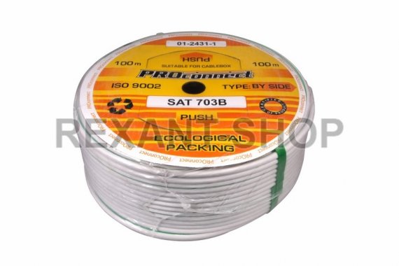 Кабель для спутникового телевидения SAT 703B+Cu/Al/Al, 75 Ом, 100м., белый PROCONNECT
