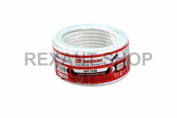 Наиболее качественным и эффективным решением для установки и подключения спутниковой телевизионной системы является коаксиальный кабель SAT 703B REXANT. Он отлично передает высокочастотные видео и аудио сигналы и прокладывается внутри помещений. Этот коаксиальный кабель состоит из центрального проводника и двойного экрана, размещенных соосно. Внутренний одножильный проводник изготовлен из высококлассной меди и помещен в полиэтиленовый диэлектрик, способствующий сохранению соосного расположения проводников. Диаметр проводника 1,02 мм. Алюминиевый экран, наложенный на сердечник, имеет дополнительную плотную медную оплетку и благодаря этому надежно защищает передаваемый сигнал от внешних помех. Номинальное волновое сопротивление кабеля SAT 703B REXANT– 75 Ом. Внешняя оболочка изготовлена из ПВХ и имеет белый цвет.