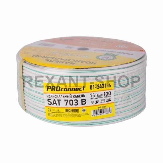 Кабель для спутникового телевидения SAT 703B+CU/Al/CU, 75 Ом, 100м., белый CABLETECH