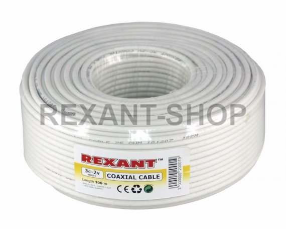 Кабель 3С-2V (75 Ом) 100м белый REXANT