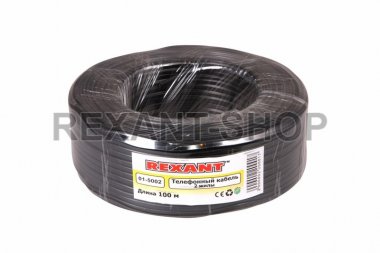 Кабель телефонный 2 жилы 100м черный (ШТЛП-2) REXANT