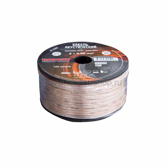 Внешняя оболочка кабеля изготовлена из силикона и имеет прозрачный цвет, одна из жил кабеля состоит из луженой меди. Площадь сечения жил данного кабеля – 0,5 мм2. Этот акустический кабель подойдет для любой, даже самой сложной звуковой аппаратуры высокого класса. Хорошее качество делают кабель фирмы REXANT отличным решением для специалистов профессионально работающих со звуком, а приемлемая цена позволяет использовать его для несложных бытовых задач.