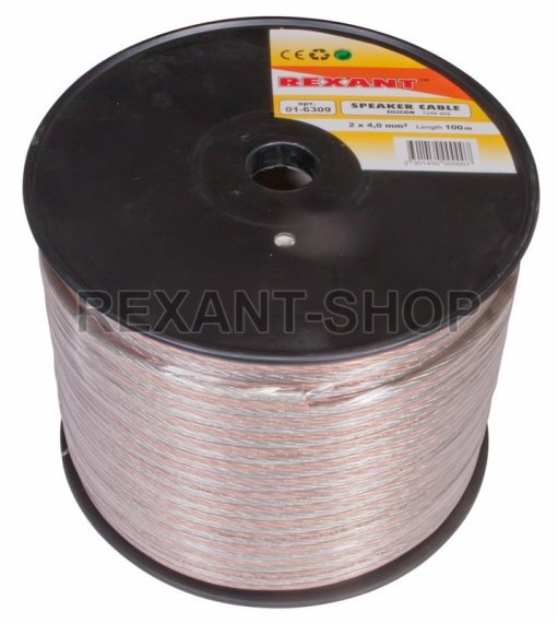 Внешняя оболочка кабеля изготовлена из силикона и имеет прозрачный цвет, одна из жил кабеля состоит из луженой меди. Площадь сечения жил данного кабеля – 4,0 мм2. Этот акустический кабель подойдет для любой, даже самой сложной звуковой аппаратуры высокого класса. Хорошее качество и приемлемая цена делают кабель фирмы REXANT отличным решением как для специалистов, работающих со звуком
