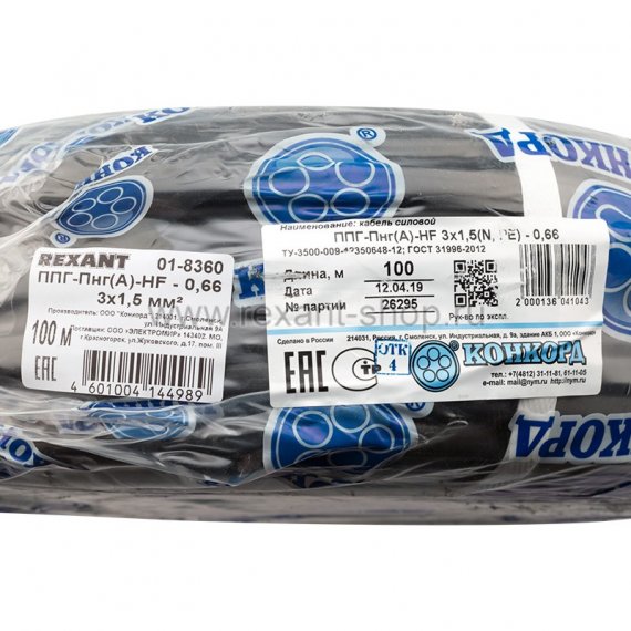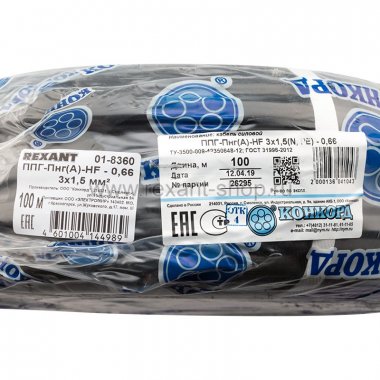 Кабель силовой медный ППГ-Пнг(А)-HF - 0,66 3х1,5 мм?, 100 м ГОСТ Конкорд