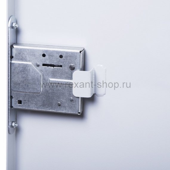 Распаячные отверстия сделаны под "толстый" кабель на 2,4 Ггц. Имеют рамную конструкцию дверного проема. Дверь утоплена на 40 мм, поэтому возможность "поддеть" ее исключена. Задние и боковые стенки проварены сплошным швом. Замок врезан в профиль, а остальная часть его защищена с обоих сторон дополнительными накладками, что исключает его выбивание либо "расковыривание" замочной скважины, замок съемный на саморезах.