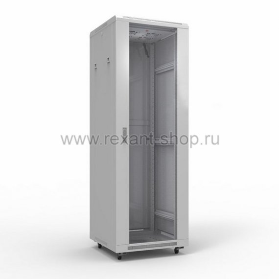 19" Напольный шкаф Rexant серии Standart 32U 600х1000 мм, передняя дверь стекло, задняя дверь металл, RAL 7035