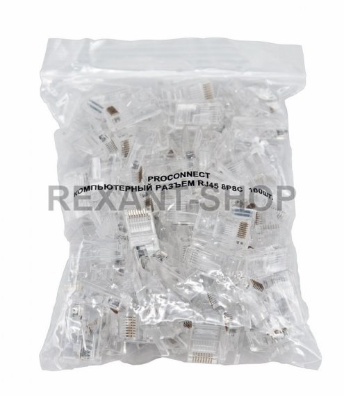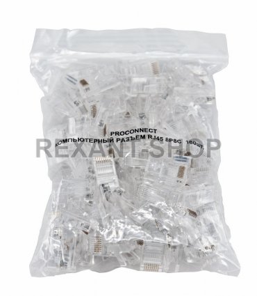 Джек RJ-45 8P8C CAT 5e PROCONNECT предназначен для соединения телекоммуникационного оборудования: компьютеры, офисные АТС, сетевые коммутаторы, концентраторы, коммутационные панели, маршрутизаторы, патч-панели, сетевые карты, а также другого оборудования, имеющего гнездо разъема 8P8C. Джек RJ-45 8P8C (англ. Registered jack) размещают на конце компьютерных или телефонных кабелей для соединения с розеткой, хабом, свитчем, сервером, модемом, роутером или другим компьютером. Штекер изготовлен из прозрачного качественного пластика и имеет 8 посадочных мест и 8 ножей-контактов. На контакты (ножи) нанесен слой технического золота для безупречной пропускной способности разъема. Для опрессовки разъема на кабеле необходим специальный обжимной инструмент.