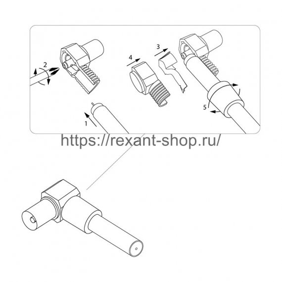 Разъем гнездо TV без пайки угловой REXANT предназначен для подключения эфирного, спутникового и кабельного телевидения с помощью радиочастотного кабеля. Такой разъем монтируется на телевизионный кабель и передает идущий по кабелю сигнал на ТВ устройства.