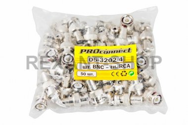 ПЕРЕХОД штекер BNC - гнездо RCA (01-022) PROCONNECT предназначен для подключения кабеля с разъемом штекер RCA к различному видеооборудованию, имеющему BNC-разъемы. Применяется главным образом для построения видеосистем. С одной стороны располагается гнездо RCA-разъема, а с другой штекер BNC-разъема. Изготовлен переход из никелированного сплава первичной меди (биметалл), что гарантирует минимальный уровень потерь при прохождении сигнала. Такой соединитель имеет ряд положительных преимуществ: