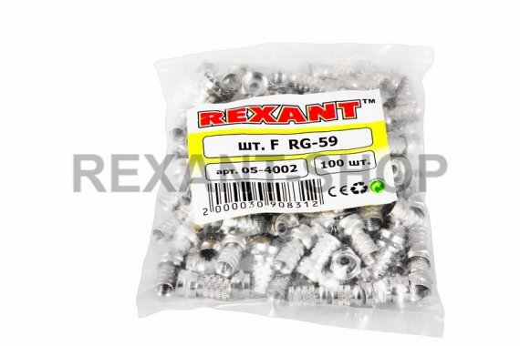 РАЗЪЕМ F-разъем RG-59 (03-008B) REXANT предназначен для соединения коаксиального кабеля волновым сопротивлением 75 Ом с телевизионным и видеооборудованием (ресиверы, телевизоры, всевозможная видеоаппаратура и т.д.). Разъем данного вида не имеет непосредственного штекера, поэтому роль штекера выполняет центральная жила кабеля, что позволяет избежать дополнительных потерь сигнала. F-коннектор изготовлен из никелированного сплава меди (биметалл). Разъем устанавливается на кабель методом накрутки гильзы разъема на внешнюю оболочку кабеля, после соответствующей зачистки контактов, и не требует применения каких-либо специальных инструментов. F-штекер выступает в роли своеобразного экрана за счет накручивания на оплетку кабеля для выполнения роли электрического контакта. Такой высокочастотный соединитель имеет ряд положительных преимуществ: