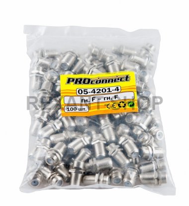 ПЕРЕХОД гнездо F - гнездо F "БОЧКА" с кольцом (03-044) PROCONNECT предназначен для соединения двух частей коаксиального кабеля волновым сопротивлением 50 или 75 Ом, на концах которых расположены штекеры F-разъема. Применяется главным образом для подключения эфирного, кабельного и спутникового телевидения к телевизионному оборудованию. В частности, он позволяет увеличить длину антенного кабеля или соединить поврежденный участок. Изготовлен переход из никелированного сплава первичной меди (биметалл), что обеспечит долговечность соединения и возможность применять его в условиях климатических перепадов. Разъем соединяет кабель методом накрутки F-коннектора с обеих сторон, после соответствующей зачистки контактов, и не требует в ходе монтажа применения каких-либо специальных инструментов. Такой высокочастотный соединитель имеет ряд положительных преимуществ: