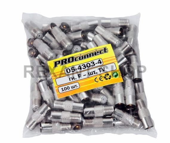 ПЕРЕХОД гнездо F - штекер TV (03-083) PROCONNECT предназначен для подключения эфирного, спутникового и кабельного телевидения с помощью радиочастотного кабеля волновым сопротивлением 50 или 75 Ом. С одной стороны располагается гнездо F-разъема, а с другой штекер ТВ-разъема. Изготовлен переход из никелированного сплава первичной меди (биметалл), что гарантирует минимальный уровень потерь при прохождении сигнала. Переход соединяется с кабель методом накрутки F-коннектора, после соответствующей зачистки контактов радиочастотного кабеля, не требуя в ходе монтажа применения каких-либо специальных инструментов. Такой высокочастотный соединитель имеет ряд положительных преимуществ: