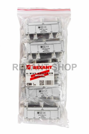 Телевизионный делитель это удобное средство для разделения сигнала на несколько равных частей. Антенные делители, также называемые телевизионные сплиттеры ,часто используются когда требуется подключить один телевизионный кабель, идущий от антенны, сразу к нескольким телевизорам. Особенно это актуально в многокомнатных квартирах или многокомнатных загородных домах. Делитель имеет один вход под F разъем и шесть выходов, также под F разъемы. Сигнал, подающийся на вход делителя, делится на шесть равных частей и передается на выходы. Для подключения кабелей используются стандартные F-разъемы. Полоса пропускания делителя от 5 до 1000МГц, эти частоты используются для стандартного эфирного телевидения. Качественно изготовленный ТВ сплиттер Rexant долго и надежно прослужит в составе телевизионной системы, делая удобной эксплуатацию нескольких телевизоров.