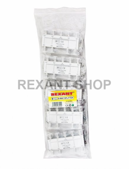 Разветвитель телевизионного сигнала на 8 выходов. Телевизионный делитель — это удобное средство для разделения сигнала на несколько равных частей. Антенные делители, также называемые телевизионные крабы или сплиттеры — часто используются, когда требуется подключить один телевизионный кабель, идущий от антенны, сразу к нескольким телевизорам или ресиверам. Особенно это актуально в многокомнатных квартирах или многокомнатных загородных домах. Делитель ТВ краб на 8 выходов Rexant имеет один вход под F разъем и восемь выходов, также под F разъемы. Антенный разветвитель (8 выходов) произведён торговой маркой REXANT. Сигнал, подающийся на вход краба, делится на восемь равных частей и передается на выходы. Для подключения кабелей используются стандартные F-разъемы. Полоса пропускания делителя ТВ краб на 8 выходов от 5 до 1000МГц, эти частоты используются для стандартного эфирного телевидения. Качественно изготовленный ТВ сплиттер на 8 выходов Rexant долго и надежно прослужит в составе телевизионной системы, делая удобной эксплуатацию нескольких телевизионных приемников.