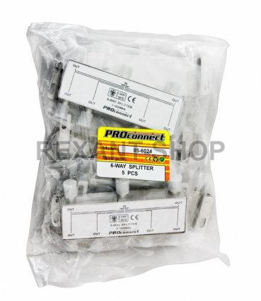 Телевизионный делитель или сплиттер незаменим в любой системе эфирного телевидения, а также в бытовых условиях, когда необходимо подключить к одной антенне несколько телевизоров или ресиверов. Делитель ТВ на 6 выходов под F-разъем предназначен для деления телевизионного сигнала, идущего от антенны к оборудованию, равномерно на число выходов. Данный ТВ сплиттер рассчитан под F разъём и имеет шесть выходов, т. е. сигнал, проходящий через сплиттер, делится на шесть частей. Кабель подключается к этому делителю с помощью F-разъемов. Активный делитель на 6 ТВ подходит для сигналов, имеющих диапазон частот 5-1000 МГц, что соответствует эфирному телевидению. Делитель ТВ на 6 выходов под F разъём 5-1000 МГц PROCONNECT — это качественное и надежное решение для систем эфирного телевидения, имеющее высокие технические характеристики и выгодную цену.