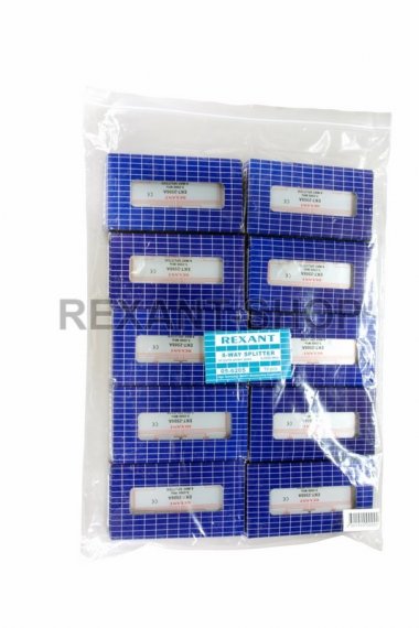 Телевизионный делитель это удобное средство для разделения сигнала на несколько равных частей. Антенные делители ,также называемые телевизионные сплиттеры часто используются, когда требуется подключить один телевизионный кабель, идущий от антенны, сразу к нескольким телевизорам или ресиверам. Особенно это актуально в многокомнатных квартирах или многокомнатных загородных домах. Делитель имеет один вход под F разъем и восемь выходов, также под F разъемы. Сигнал, подающийся на вход делителя, делится на две равные части и передается на выходы. Для подключения кабелей используются стандартные F-разъемы. Полоса пропускания делителя от 5 до 2500МГц позволяет использовать его в системах спутникового телевидения. Качественно изготовленный ТВ сплиттер Rexant долго и надежно прослужит в составе телевизионной системы, делая удобной эксплуатацию нескольких телевизоров.