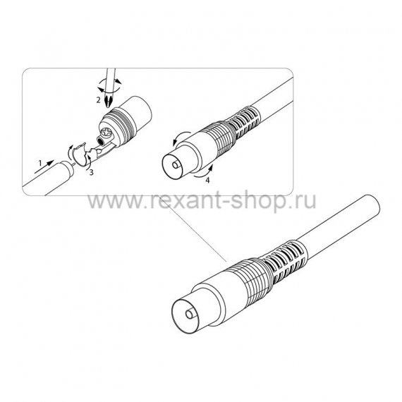 Разъём предназначен для подключения эфирного, спутникового и кабельного телевидения. Установка разъема производится с помощью винтового зажима центральной жилы и обжима экрана на коаксиальном кабеле. Изготовлен разъем из никелированного металла, а колпачок из высокопрочного пластика.