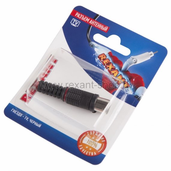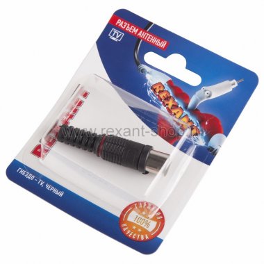 Разъем антенный на кабель, (гнездо-TV), черный, (1шт.) REXANT