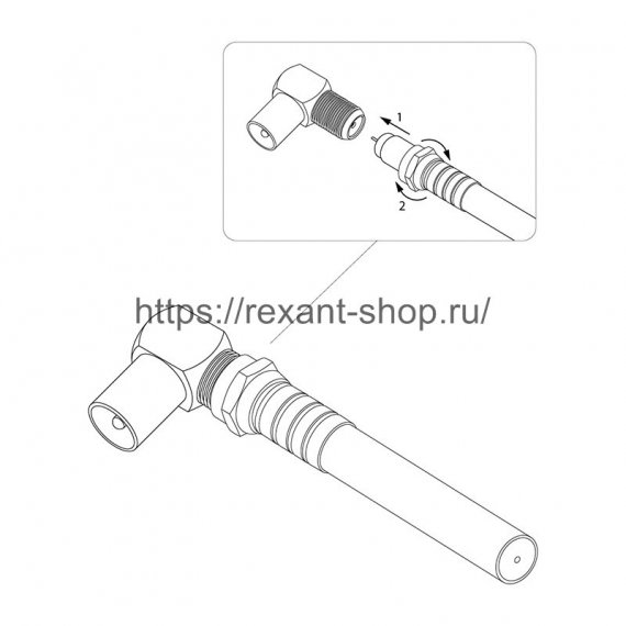 Переходник предназначен для соединения коаксиального кабеля (предварительно установленным F-разъёмом) с ТВ оборудованием, таким как (розетки -ТВ, ресиверы, приставки DVB-T2, антенны-ТВ и т.д.). Отличительной особенностью переходника является угловая форма, что позволяет подключить кабель к оборудованию под прямым углом 90°. Изготовлен переход из никелированного металла, контакты выполнены с высокими антикоррозийными свойствами.