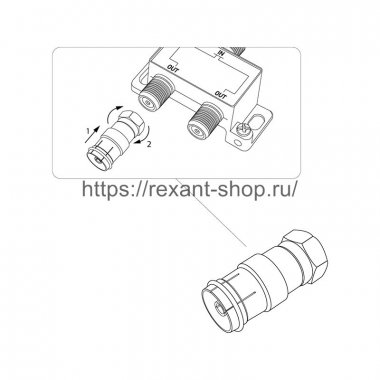 Переходник антенный, (штекер F - гнездо TV), (1шт.) REXANT