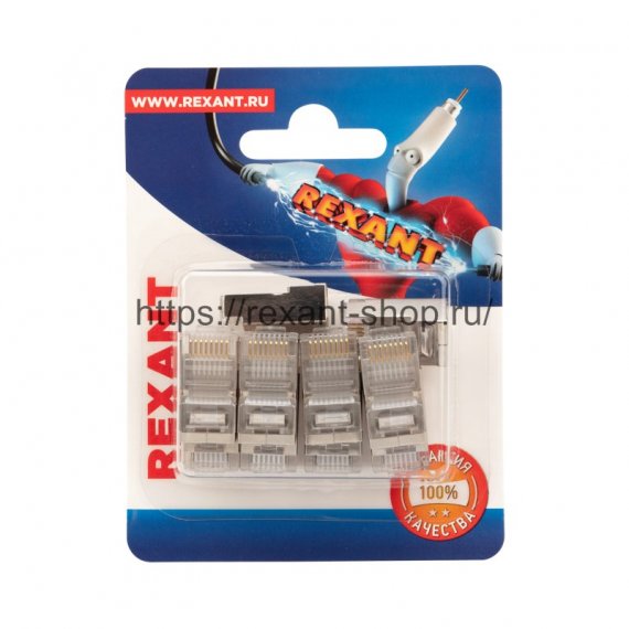 Rexant Разъем сетевой LAN на кабель, штекер 8Р8С (Rj-45), под обжим, в экране, (10шт.)