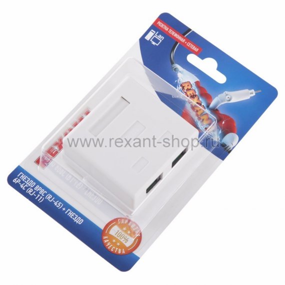 Розетка телефонная + сетевая LAN, на стену, (гнездо 8Р8С (Rj-45) + гнездо 6Р-4С (RJ-11)) REXANT