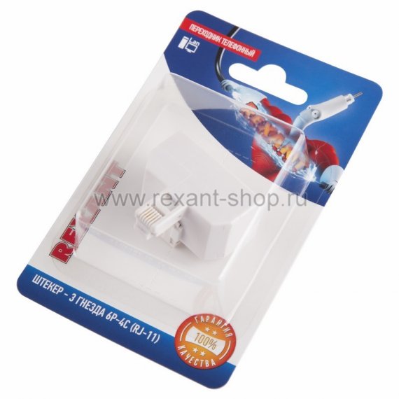 Переходник телефонный, (штекер 6Р-4С (RJ-11) - 3 гнезда 6Р-4С (RJ-11)) REXANT
