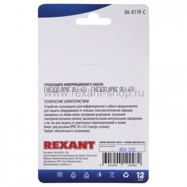Rexant Грозозащита информационного кабеля 06-0119-C Rexant 06-0119-C
