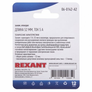 Rexant Зажим крокодил, длина 52 мм, ток 5A 06-0142-A2