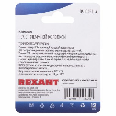 Rexant Разъём аудио, RCA с клеммной колодкой 06-0150-A