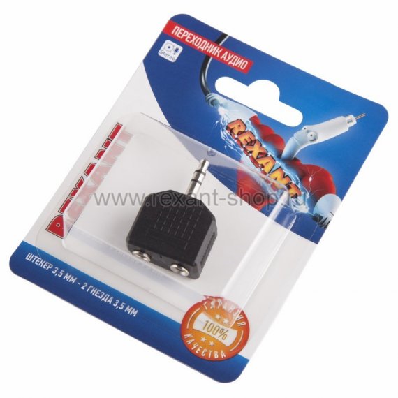 Переходник аудио (штекер 3,5мм. стерео - 2 гнезда 3,5мм. стерео), (1шт.) REXANT