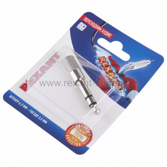 Переходник аудио (штекер 6,3 мм стерео - гнездо 3,5мм стерео), металл, (1шт.) REXANT