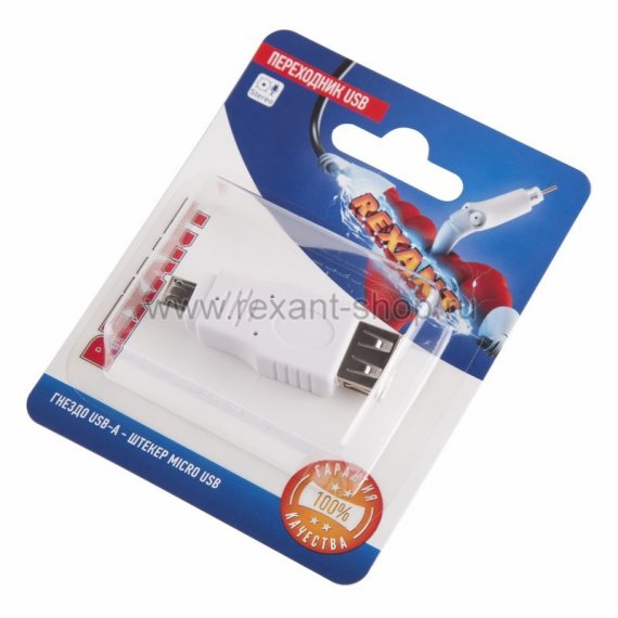 Переходник USB (гнездо USB-A - штекер micro USB), (1шт.) REXANT