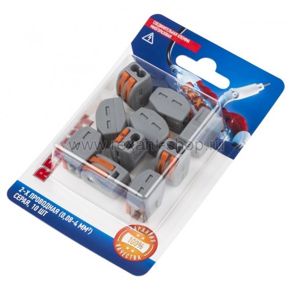 Соединительная клемма многоразовая, 2-х проводная, серая (0,08-4 мм?), (10шт.) REXANT