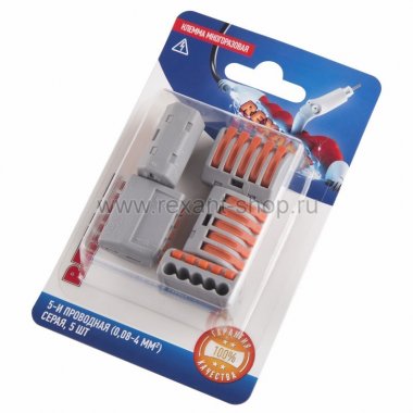 Соединительная клемма многоразовая, 5-и проводная, серая (0,08-4 мм?), (5шт.) REXANT