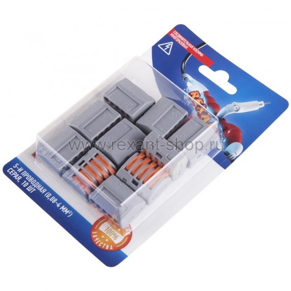 Соединительная клемма многоразовая, 5-и проводная, серая (0,08-4 мм?), (10шт.) REXANT