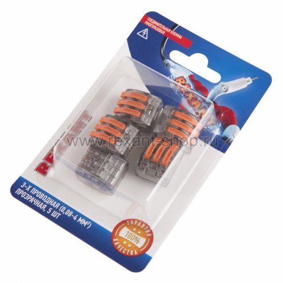 Соединительная клемма многоразовая, 3-х проводная, прозрачная (0,08-4 мм?), (5шт.) REXANT