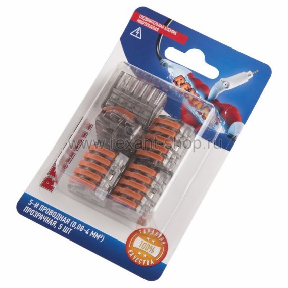 Соединительная клемма многоразовая, 5-и проводная, прозрачная (0,08-4 мм?), (5шт.) REXANT