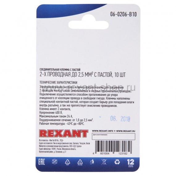 Соединительная клемма с пастой, 2-х проводная до 2,5 мм?, (10шт.) REXANT