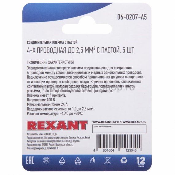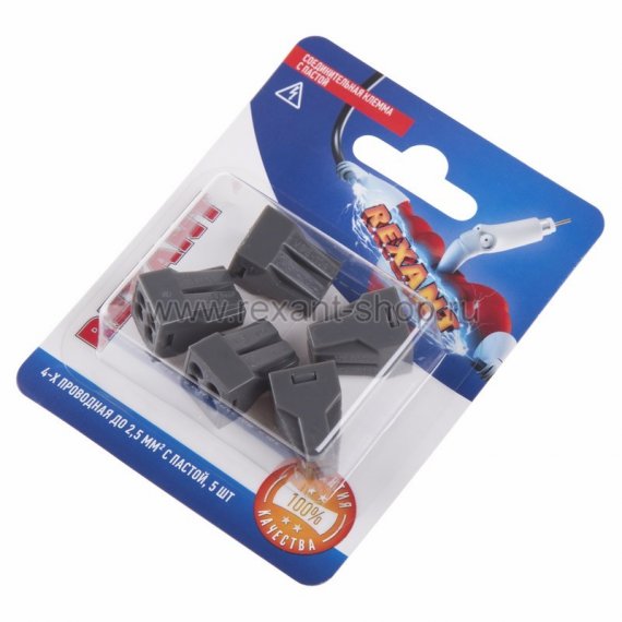Соединительная клемма с пастой, 4-х проводная до 2,5 мм?, (5шт.) REXANT