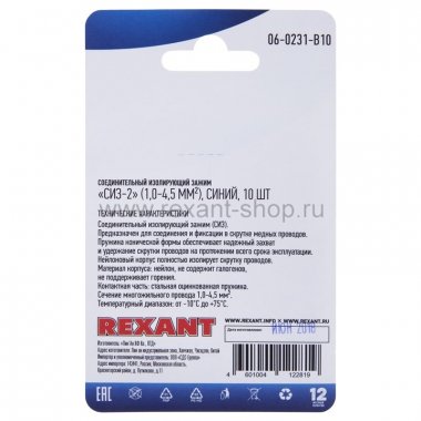Rexant Соединительный изолирующий зажим "СИЗ-2" (1,0-4,5 мм?), 06-0231-B10 Rexant 06-0231-B10