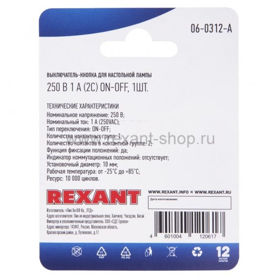 Купить по низким ценам Rexant 06-0312-AОписание Rexant 06-0312-A