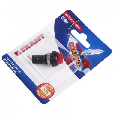 Выключатель-кнопка 250V 1А (2с) (ON)-OFF Б/Фикс красная (PBS-11В) REXANT (в упак. 1шт.)