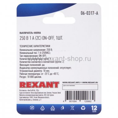 Rexant Выключатель-кнопка 250V 1А (2с) 06-0317-A