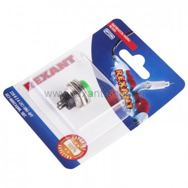 Выключатель-кнопка металл 220V 2А (2с) (ON)-OFF ?16.2 зеленая (RWD-306) REXANT (в упак. 1шт.)