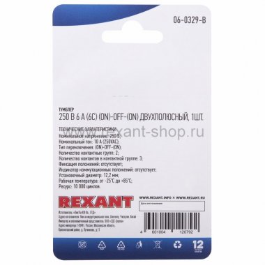 Rexant Тумблер 250V 6А (6c) 06-0329-B