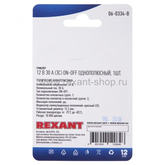 Rexant Тумблер 12V 30А (3c) 06-0334-B