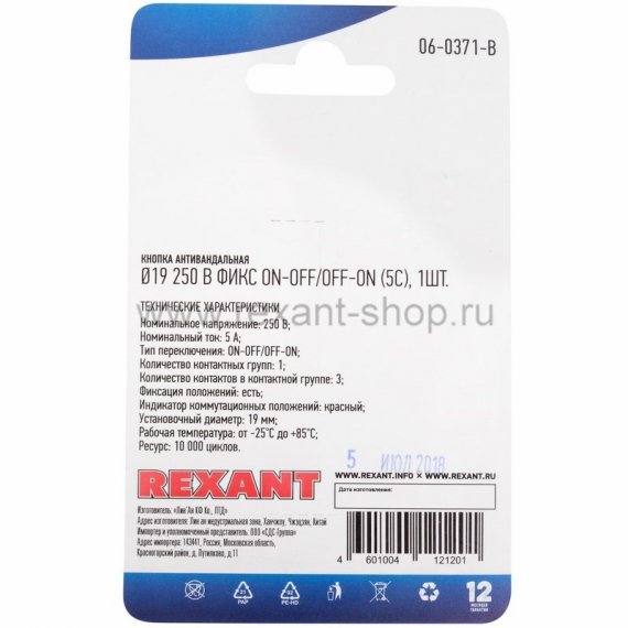 Rexant Кнопка антивандальная 19 250В 06-0371-B