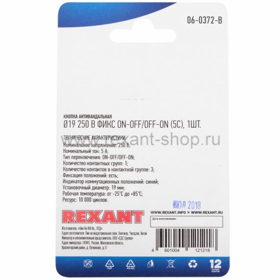 Rexant Кнопка антивандальная 19 250В 06-0372-B