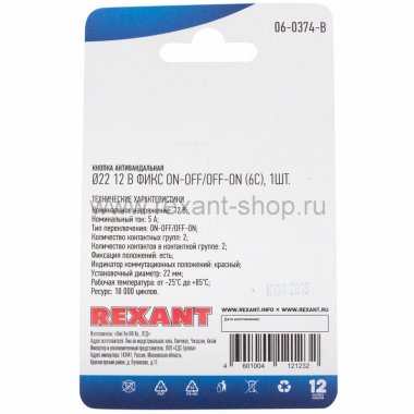 Rexant Кнопка антивандальная 22 12В 06-0374-B
